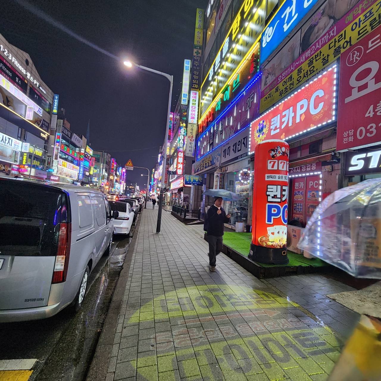 술집·노래방 등 유흥가 밀집이라 밤에도 사람 끊기지 않는 자리입니다. 다이소, 병원, 각종 상가까지 붙어 있어서 낮/밤 유동 다 잡히는 위치예요.