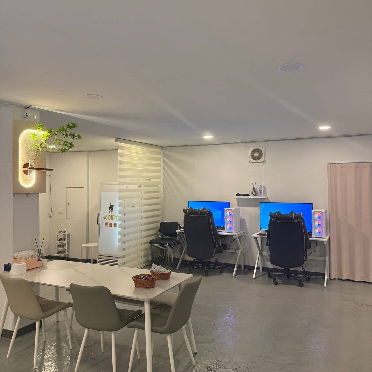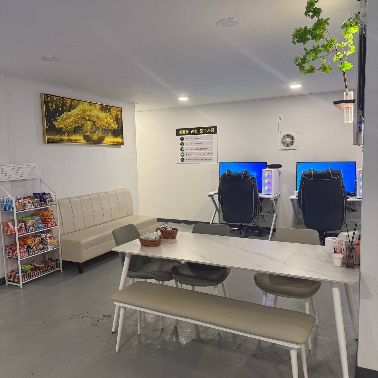 평수가 넓고 매우 깔끔합니다. PC 사양도 좋고 전부 새걸로 교체했습니다. 방이 2개있고, 1개는 먹자방으로 사용가능하며
