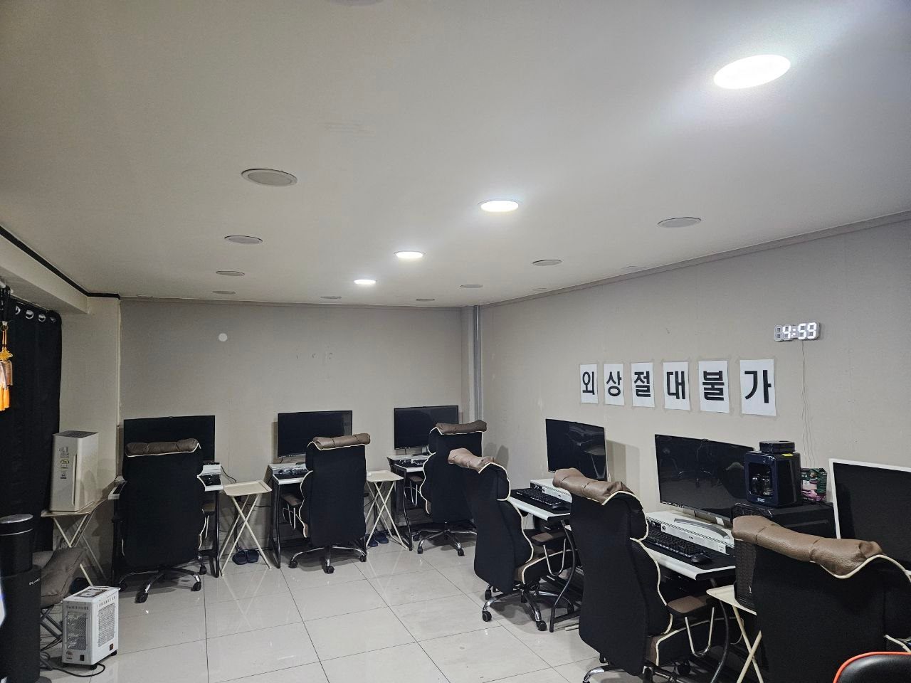 - 컴퓨터등 기타집기류 : 컴퓨터 7대(전체 34인치 커브드 모니터), 남녀 각각 실내 화장실, 365일 뜨거운 물 사용 가능(건물 태양광 보일러 공유), 쇼케이스 냉장고 신품(4개월 사용), 미니냉장고, 정수기, 전자레인지, 22평형 냉온풍기, 공기청정기, 공기소독기, CCTV(렌탈 X, 신품 자가설치 1년 사용중, 온라인으로 모니터링 기능)